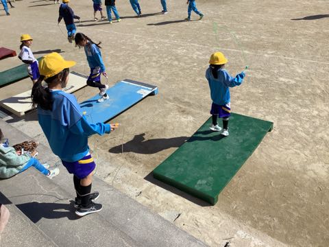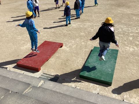 今日から6年生の奉仕作業で補修とペンキ塗りを終えた縄跳び練習台が再び元の位置に設置されました。大勢の子たちが利用してくれて、もう足跡がいっぱい…。縄跳び練習台も喜んでいます。