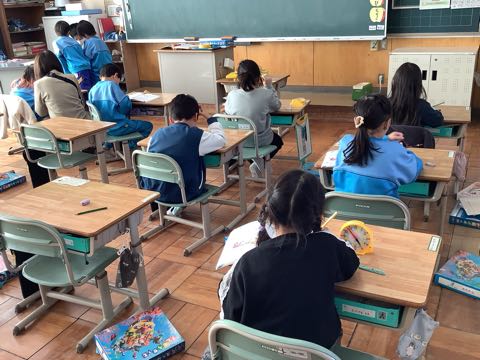 今日は節分。給食では豆がつき、「今夜は恵方巻きを食べるよ。」と言っている子もいました。