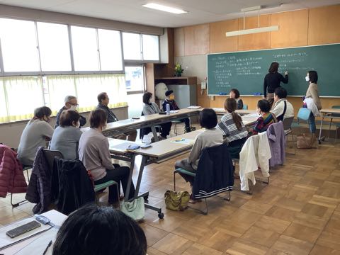 会議室では幡豆地区座談会として校区の方々が集まっていました。2012年に陸前高田でボランティア活動に参加した学生の体験話を聴きながら学びを深めていました。