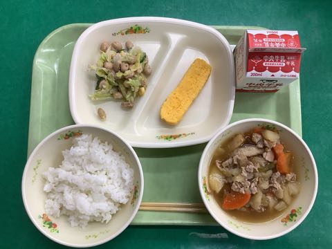 ご飯 牛乳卵焼き大豆サラダ肉じゃが