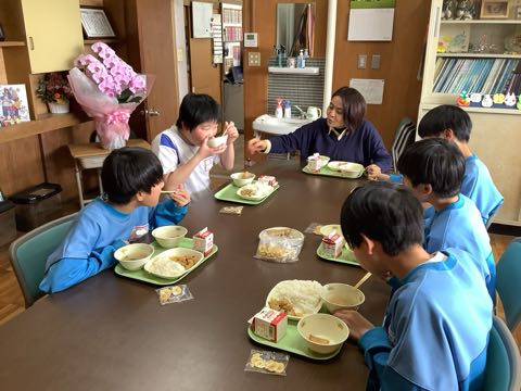 今日から6年生と校長先生の会食が始まりました。6年生が校長室に5名程度ずつ来室します。一人一回、数日にわけて全員が校長先生と会食します。