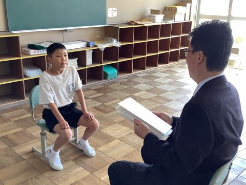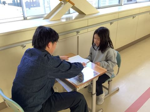 学活では担任の先生から一人ずつ、通知表をもらいました。