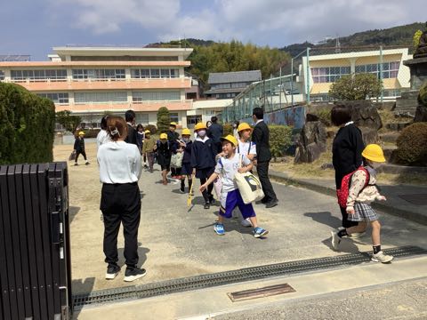 一斉下校で先生方にあいさつをして帰って行きました。