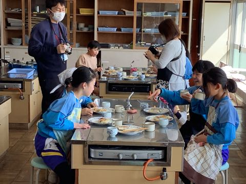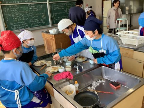 5年生はみんなで協力して調理実習をしました。