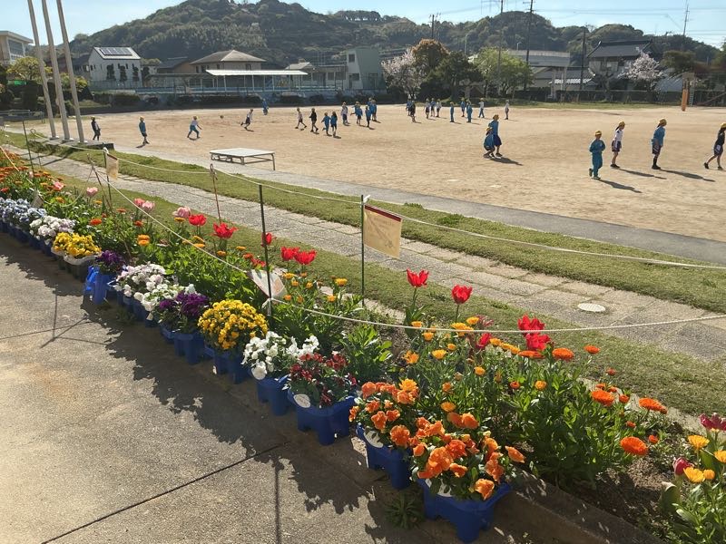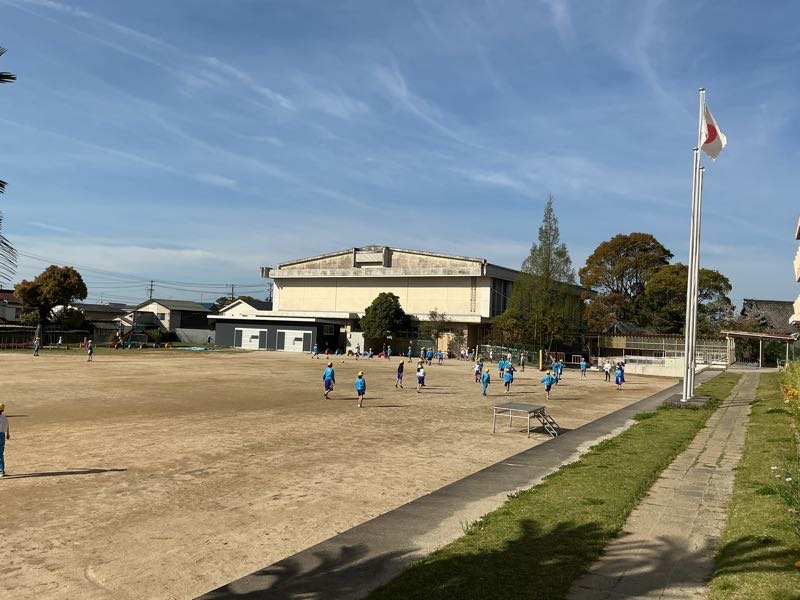 今日は半日で明日から給食が始まります。始業前から運動場で元気な声が聞こえていました。
