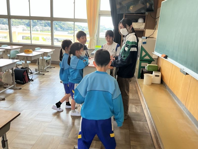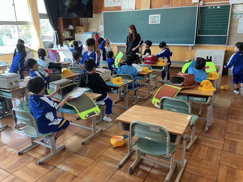 1年生は担任の先生の指導のもと、朝の支度の仕方を学んでいました。