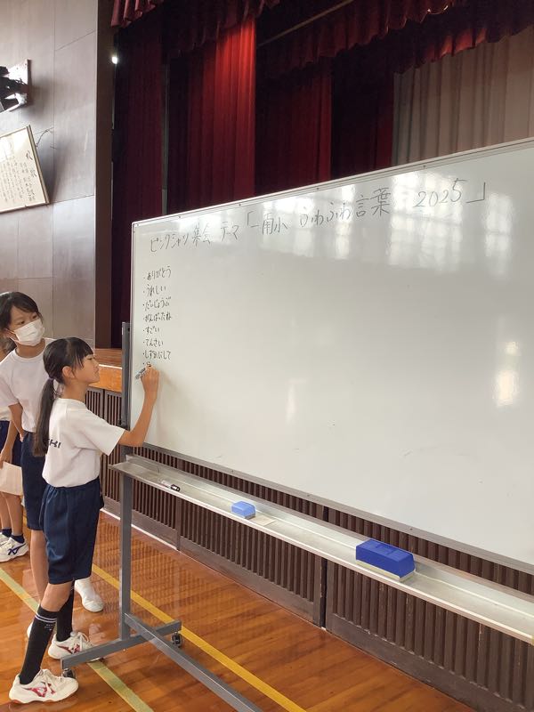 今日は「ピンクシャツ集会」がありました。テーマは「一南小ふわふわ言葉2025」です。通学団で話し合いをしました。多くのふわふわ言葉が出ました。ふわふわ言葉にあふれる一南小になるようにみんなでがんばります。