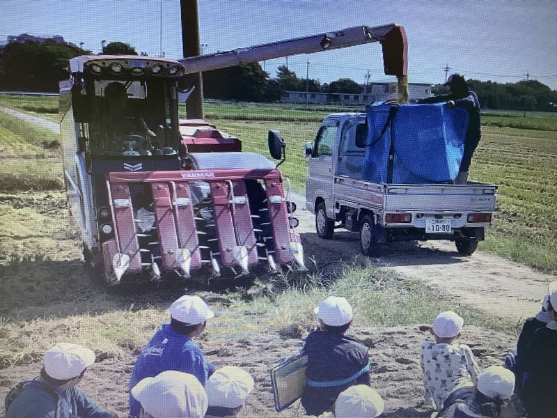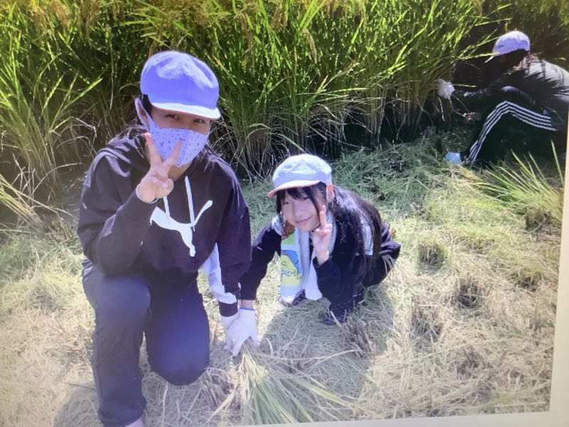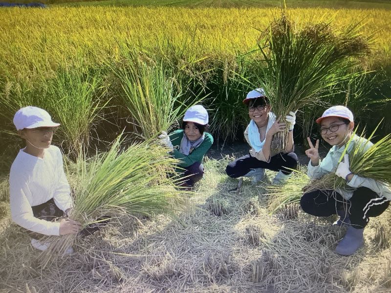 秋晴れの空もと「稲刈り・もみすり」をしました。農家の方の説明を聞いて、実際にみんなで稲刈りをしました。刈り取ったお米は後日、感謝の会で味わう予定です。