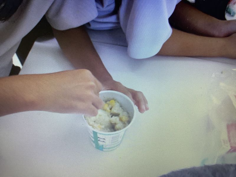 防災学習で災害クッキングについて市の危機管理課の方にお話を聞きました。じゃがりこや鯖缶を使ってポテトサラダやご飯の美味しいおかずになることがわかりました。とても勉強になりました。18日の校区防災訓練では地域の方に向けて防災の発表をします。