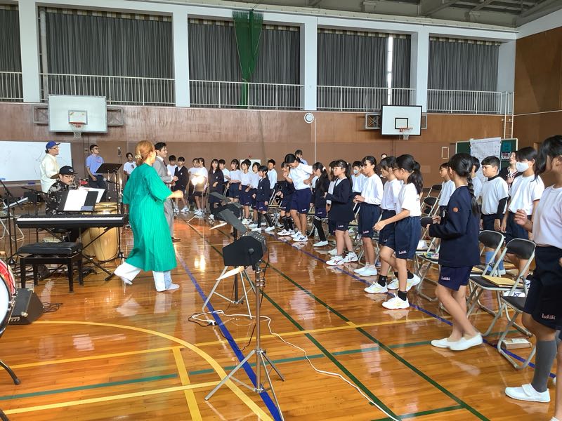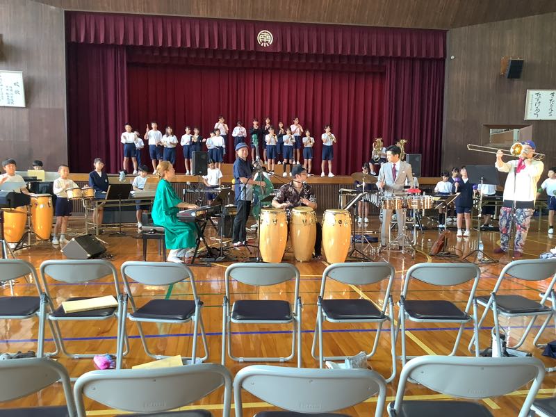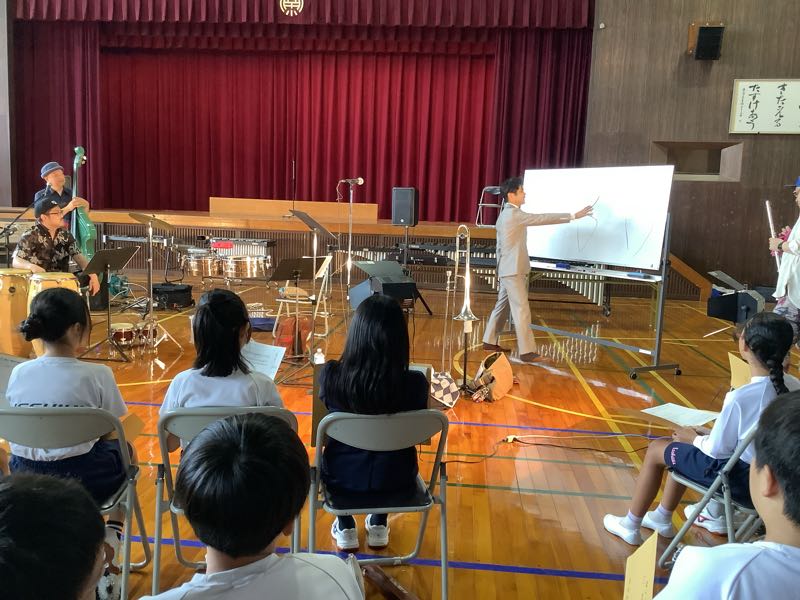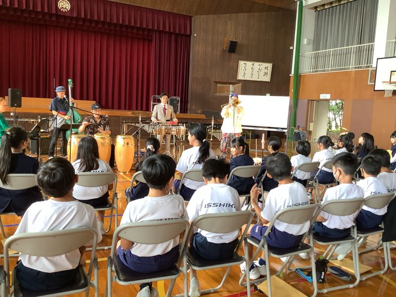 5年生を対象にプロの演奏家の方から「ラテン音楽」について学びました。様々な歴史や曲や楽器の成り立ちについて演奏を交えて教えていただきました。最後に学芸会で演奏する「マンボNo.5」をセッションしました。とても楽しかったです。