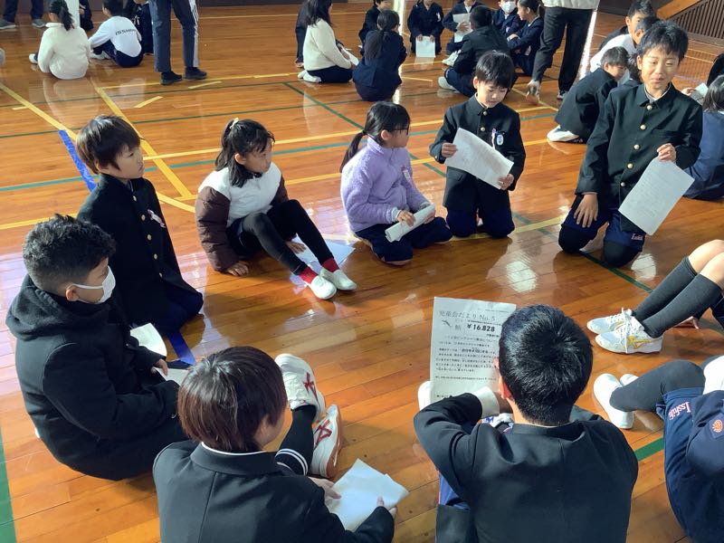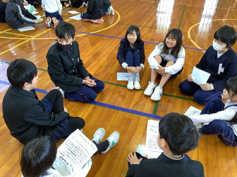 自分を元気にする方法について縦割りグループの中で、それぞれ意見を出し合いました。