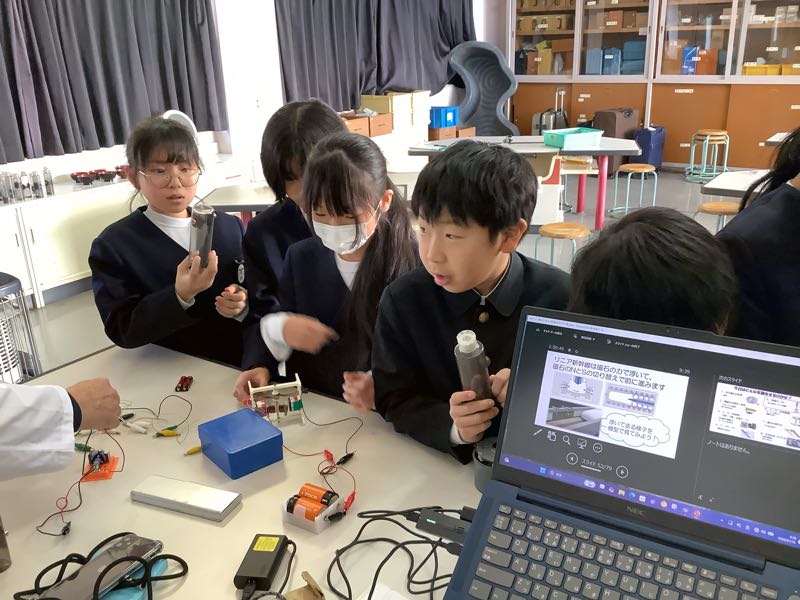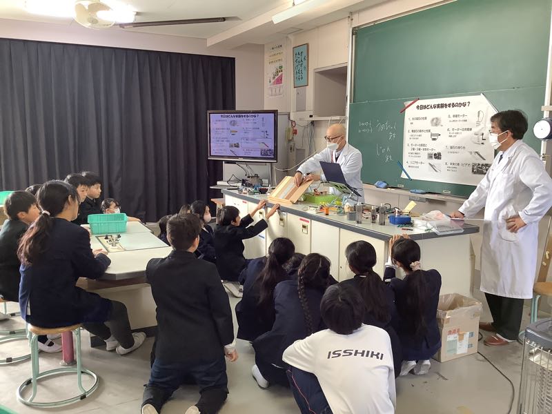 デンソーサイエンスの方が理科の電磁石の実験をいろいろ見せてくださったり、やらせてくださったりしました。わくわくがみんな止まりませんでした。