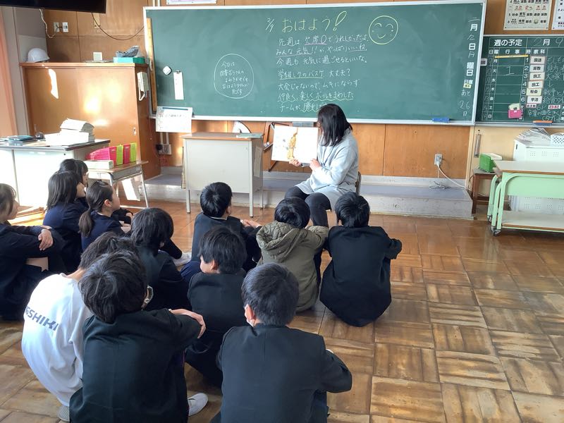 今日は読み聞かせがありました。教室からオカリナの音色が聞こえてきたり笑い声が聞こえてきたり楽しい読みきかせの時間でした。