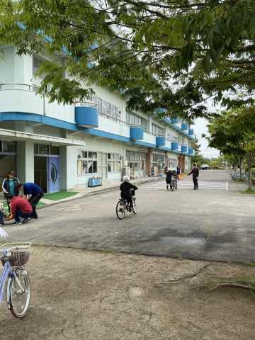 3年生と5年生は自転車に乗って交通ルールを学びました。