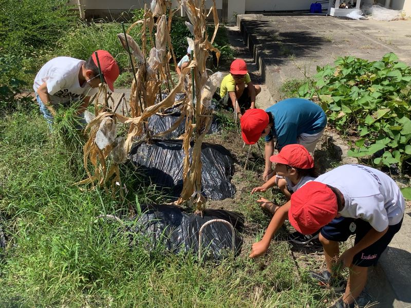 いい感じに乾いてきたポップコーン用とうもろこしの畑の草取りをしました。さあ、実はどのくらいついているでしょうか?まだまだ先のお楽しみです。