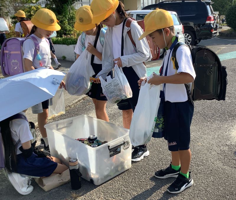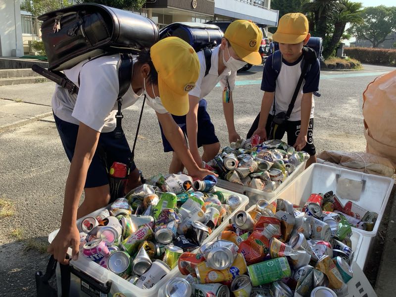 昨日と今日の二日間、缶類の資源回収がありました。たくさんの子が持って来てくれました。
