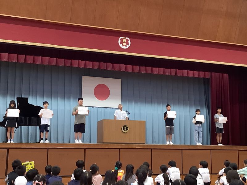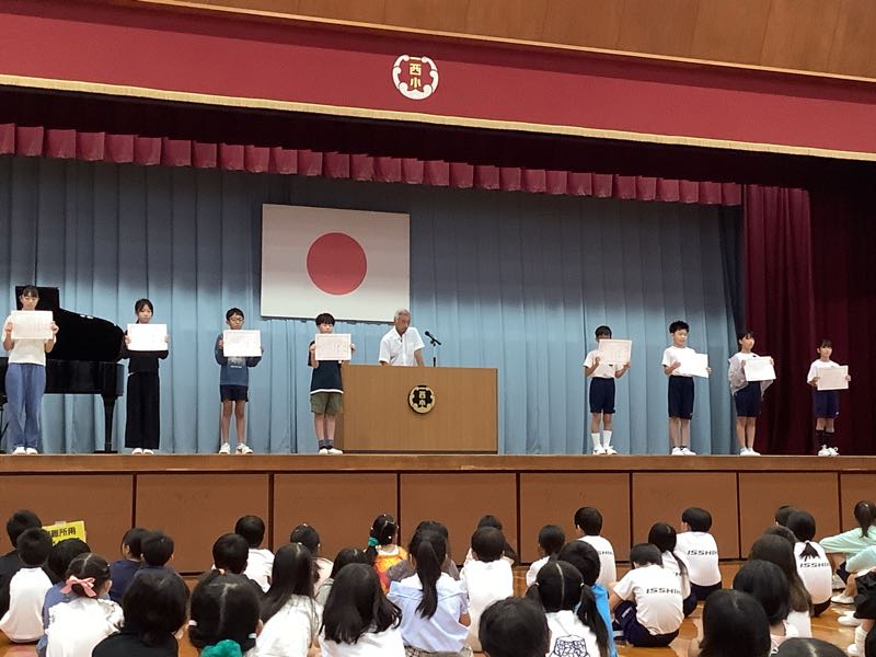 今日の全校朝会で、後期の児童会役員、委員会委員長、学級委員の任命がありました。 役員・委員長の所信表明では、「笑顔いっぱいにしたい」「元気で楽しい学校にしたい」「あいさつを学校の自慢にしたい」と、一色西部小学校をもっとよくしたいという気持ちが伝わってきました。