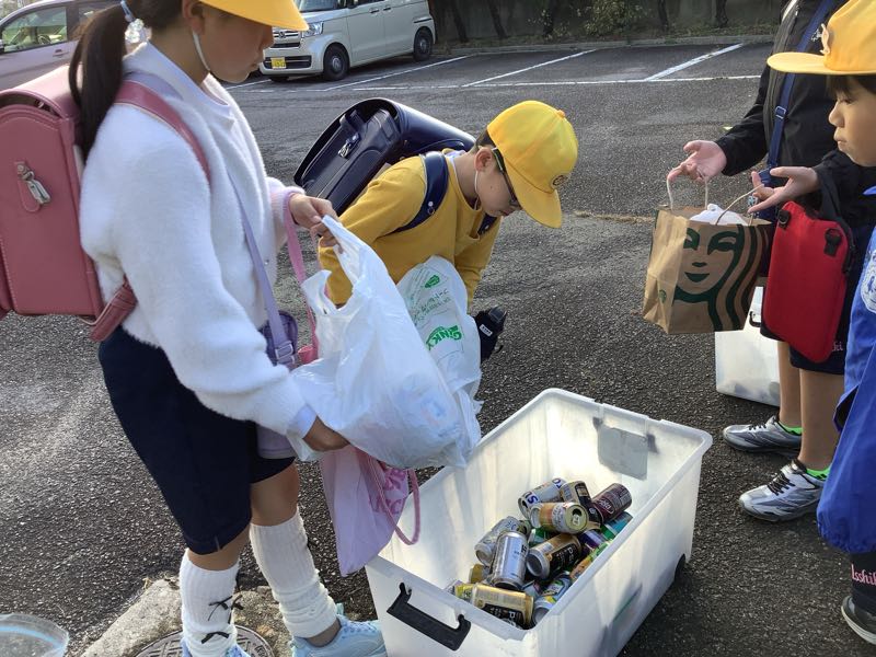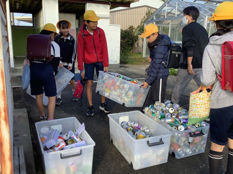 缶類の資源回収がありました。2日間でたくさんの子が持ってきてくれました。ご協力ありがとうございました。
