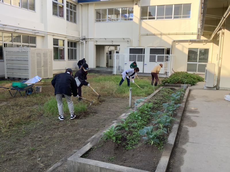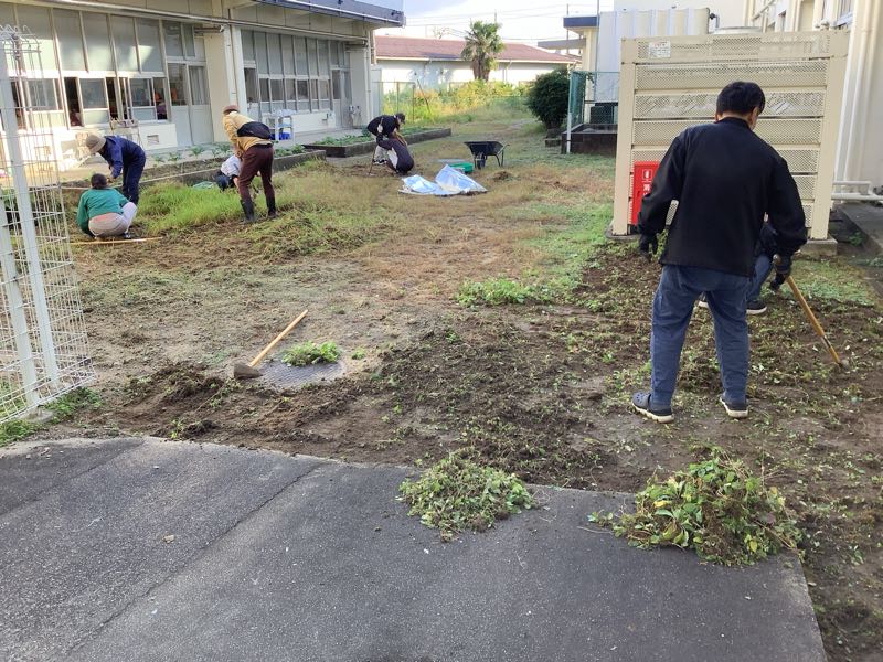 奉仕作業では、2年生教室前の草取りをしました。たくさんの草が取れ、きれいになりました。