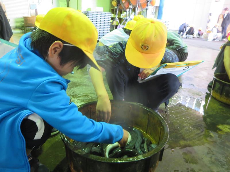 総合で学習しているウナギの池と工場にも行きました。エサを触ったり、池のハウスに入らせてもらったり、うなぎも触らせてもらいました!本や教科書で学んだことを実際に体験できて、心に残る体験になりました。