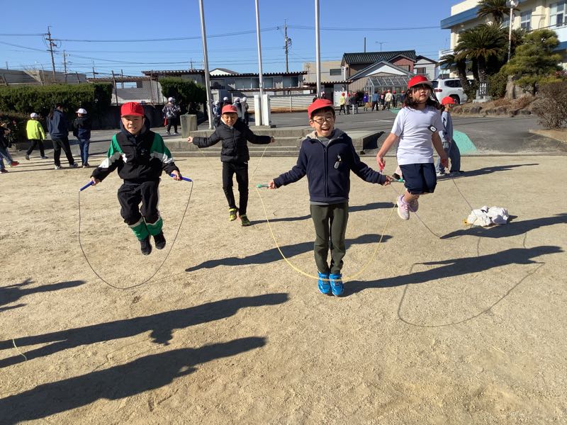 チャレンジ縄跳び週間が始まりました。月、水、金のふれあいタイムになると学年ごとに集まっていろいろな技を練習しています。友達に、「勝負しよう!」と声をかけたり、技のコツを聞いたり、友達と協力しあって頑張る姿があちこちで見られます。寒い季節も縄飛びで体を温めて元気に過ごしましょう。