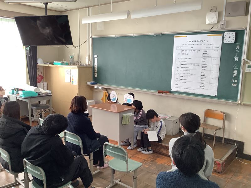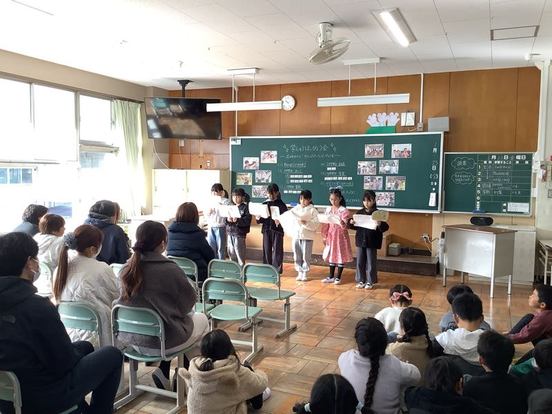 学習発表会がありました。 この1年で学習したこと、できるようになったこと、総合で調べたことなどを発表しました。 音読や歌、劇をしたり、グループでまとめたことをスライドや実演で伝えたり。これまでの学習の成果をしっかり発表することができました。