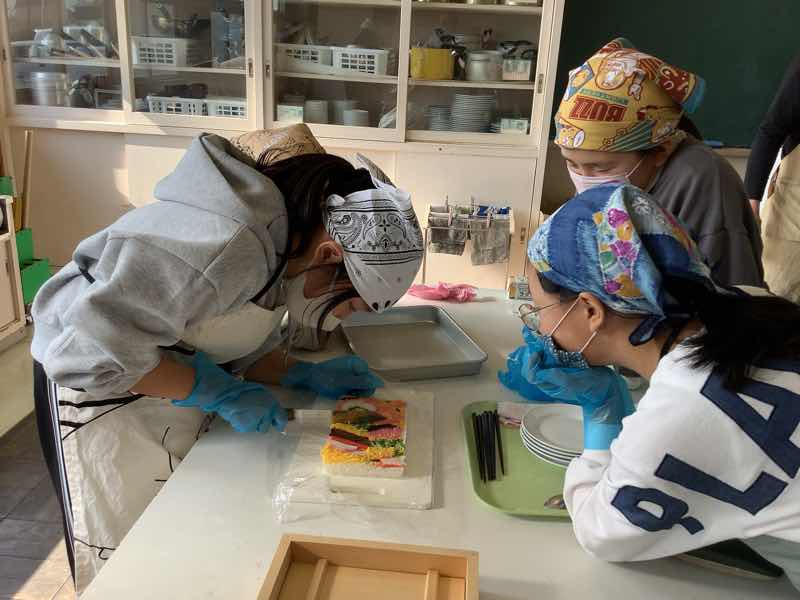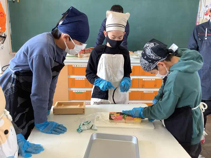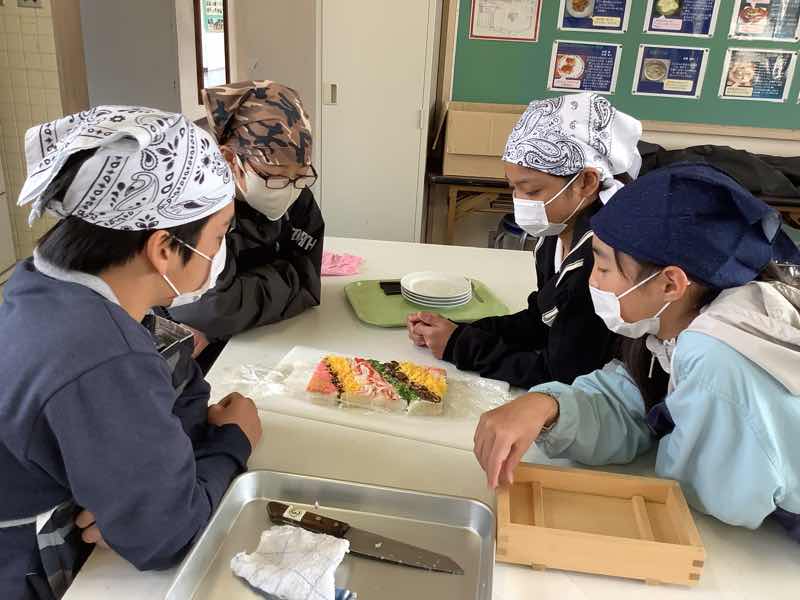 10月に収穫したお米を使って箱寿司を作りました。JAさんや農家さんにご協力いただき、子供たちは伝統料理に親しむことができました。