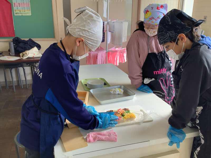 彩りのよい箱寿司ができ、子供たちは大満足♪いつも以上にお米のおいしさを感じたようです。