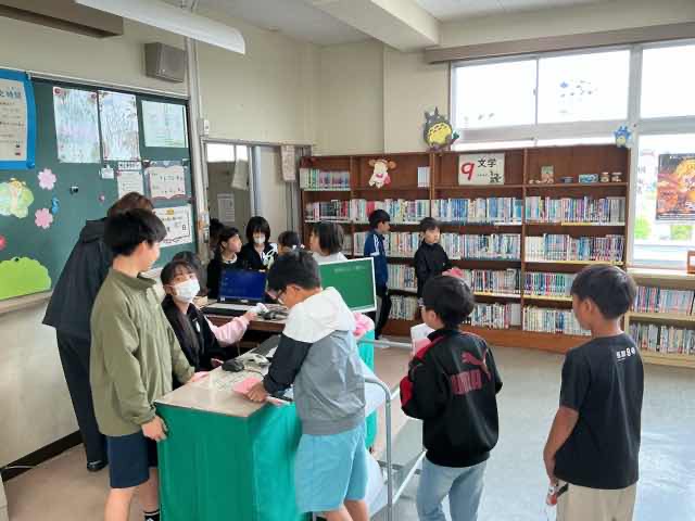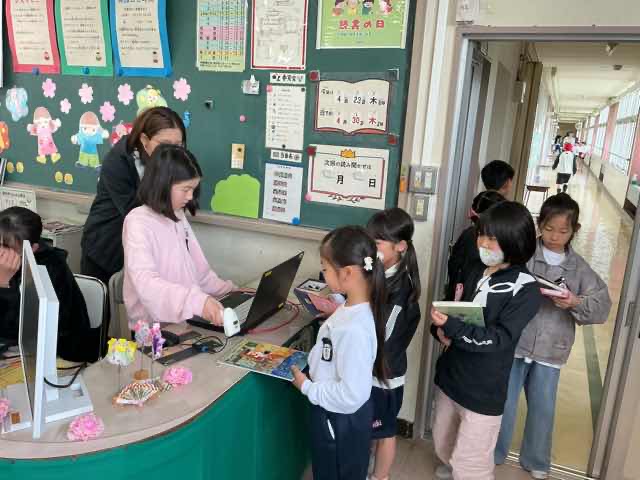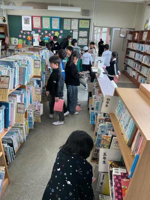今日は運動場の状態が良くないため、ふれあいタイムは外で遊ぶことができませんでした。図書室が少し賑わい、本を返却する人が廊下まで並んでいました。