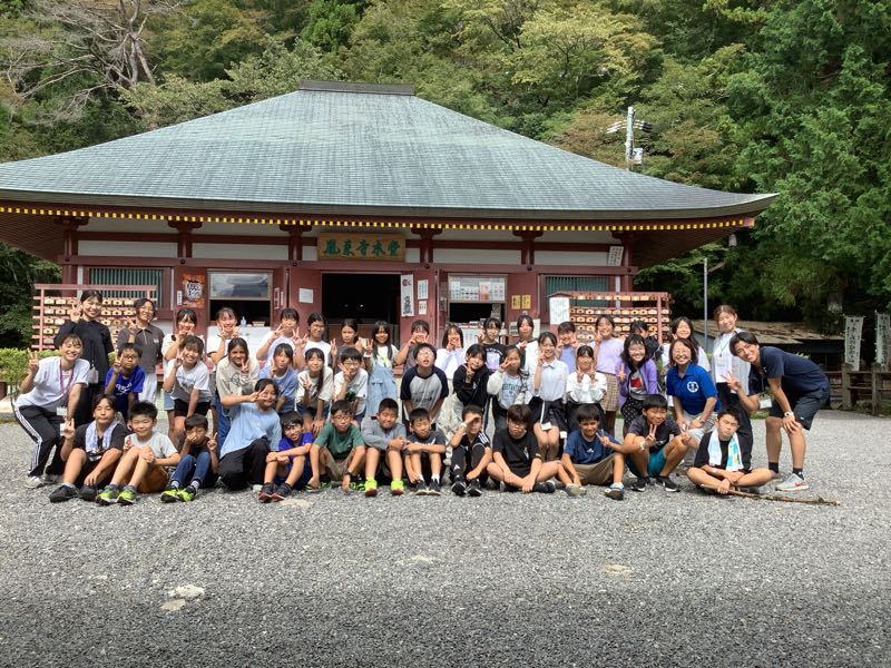 鳳来寺山にみんな無事登頂できました! 仲間で声をかけ合い、助け合いながらがんばって登った後のおにぎりは、とっても美味しかったです!