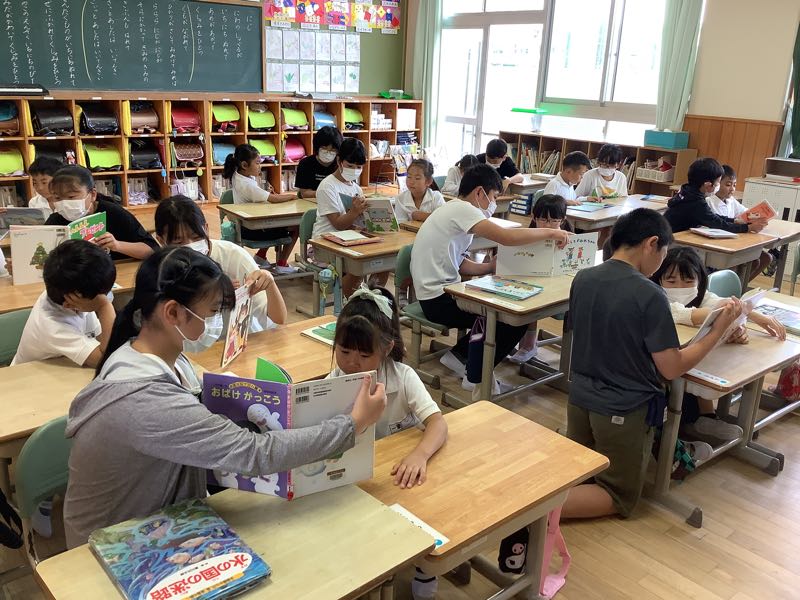 6年生が1年生に読み聞かせを行いました。1年生のリクエスト本を、6年生のお兄さんやお姉さんが優しく読み聞かせました。1年生から笑顔がこぼれていました。