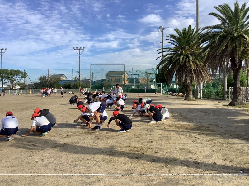 全校児童が力を合わせて、グラウンドの石拾いをしました。きれいになったグラウンドで、スポーツフェスティバルに向けて練習が始まります。