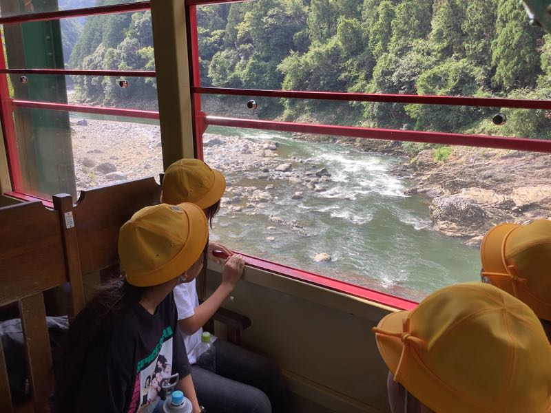 2日目の最初は、嵯峨野を走るトロッコ列車に乗って嵐山に向かいました。