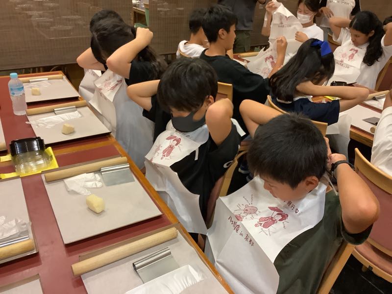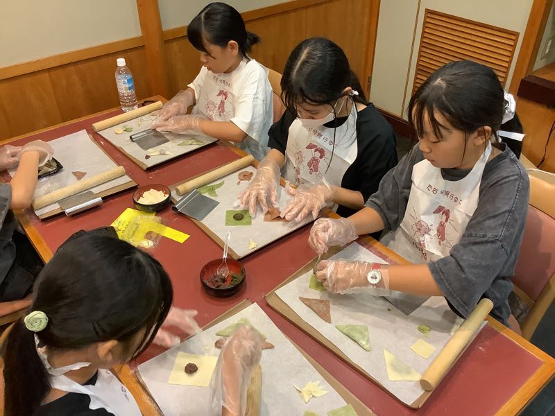 生地をこねて、あんこを包んで、自分だけの八つ橋が完成しました。