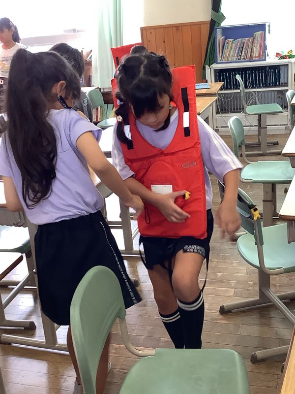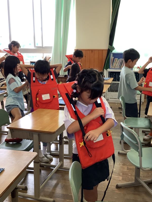 非常食を配付してもらったり防災グッズを身に付けたりして防災の意識を高めました。
