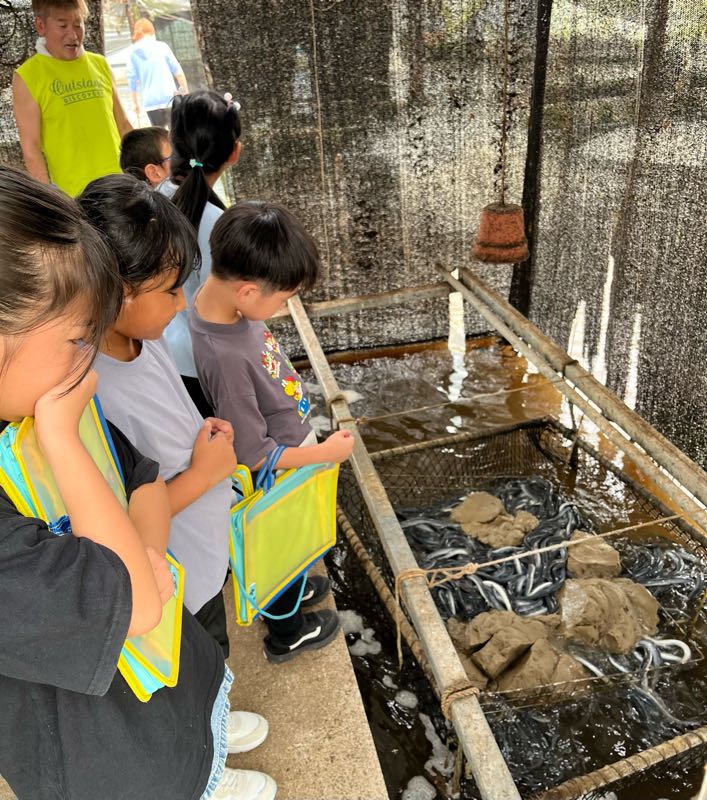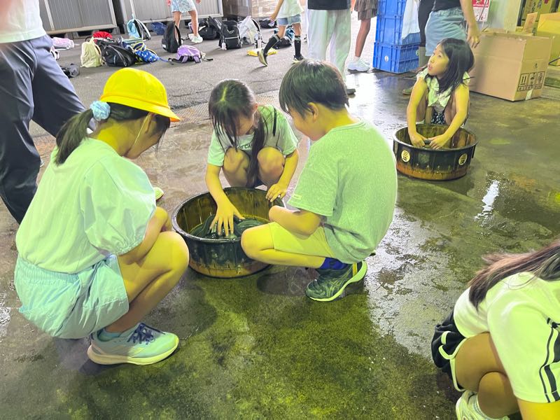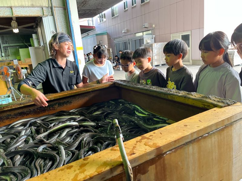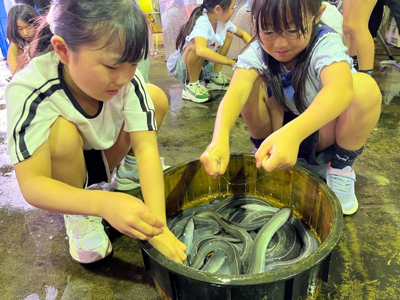 ぬるぬるしたウナギをつかむことができた子もいました。
