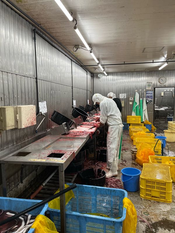 次に、ウナギの加工場に行って、ウナギをさばいて焼く工程を見せていただきました。