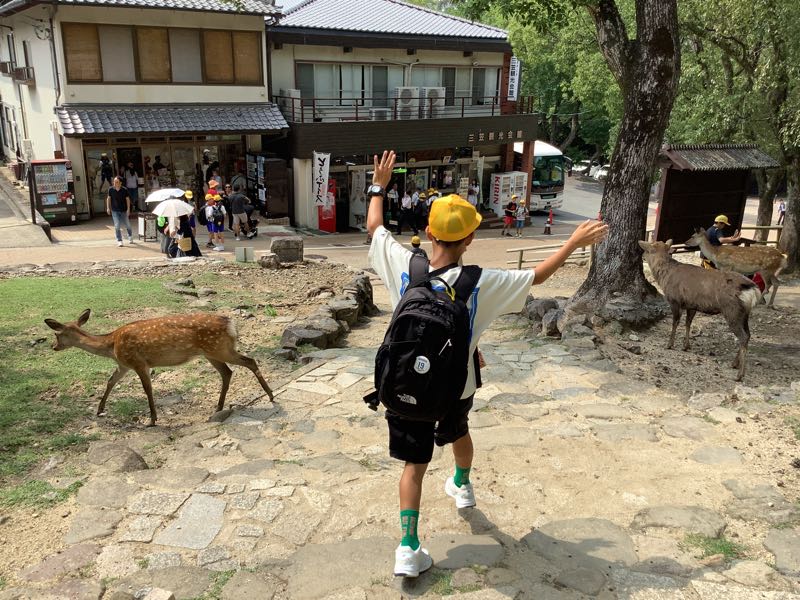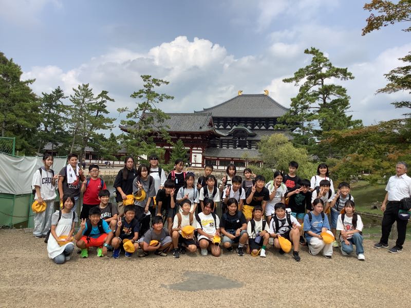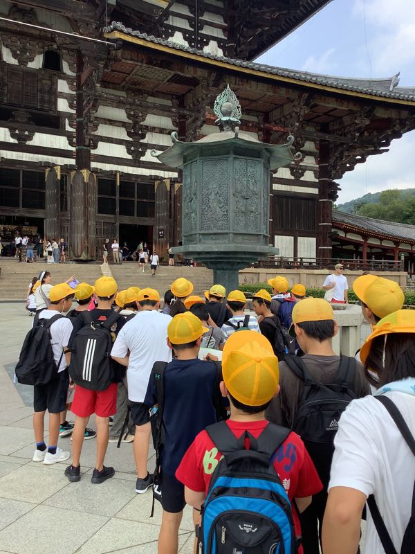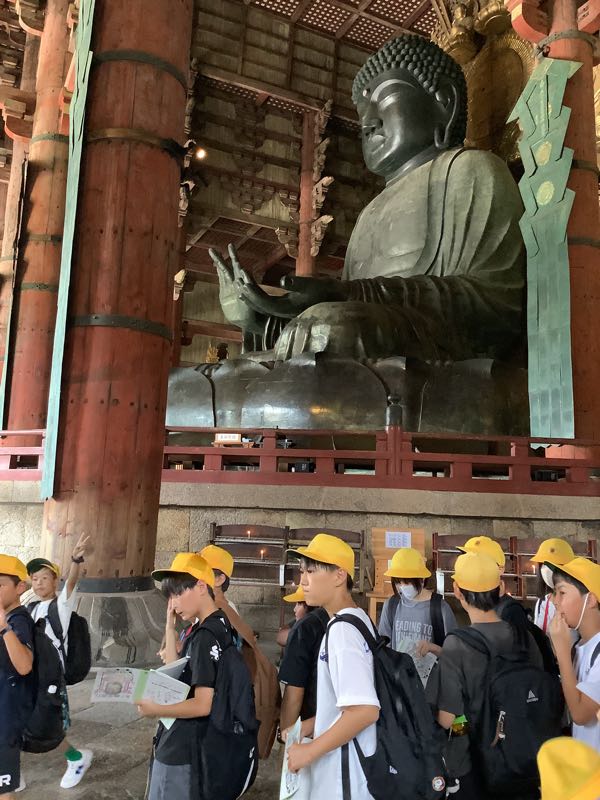 最初の見学場所、東大寺に到着しました。ガイドさんの話を聞きながら一生懸命メモをする姿が見られました。東大寺の大仏の大きさに圧倒されました。
