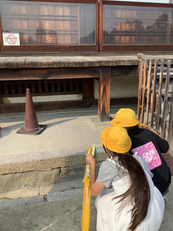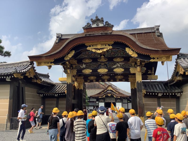 若草山の後は、二条城に行きました。徳川家の権勢を物語る、豪華な障壁画や欄間彫刻を見ました。鶯張りの廊下の仕組みも学びました。