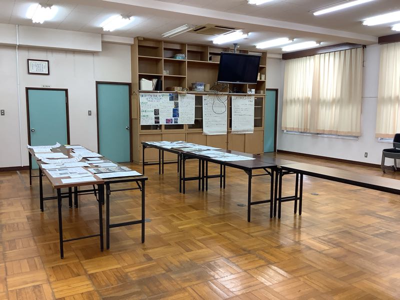 夏休み中に一人一研究やポスター、習字などに挑戦した子達の作品展を行っています。1・2年生は体育館2階会議室、3・4年生は多目的室、5年生は旧職員室、6年生は家庭科室にて展示しています。