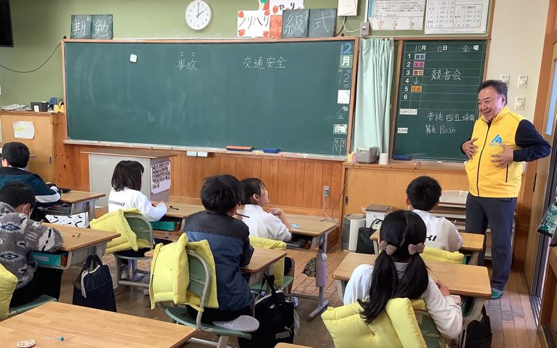 3年生が西尾市法人会一色支部の方から交通安全のキーホルダーを寄付していただきました。授業のはじめには警察署の方から「小学生の自転車の事故が多いこと・ヘルメットをかぶらない子がいることが心配です。みんなで交通安全に気をつけてください。」と、お話を聞きました。キーホルダーには裏面に安全祈願のメッセージをそれぞれ書きました。これからも交通安全に気をつけたいです。