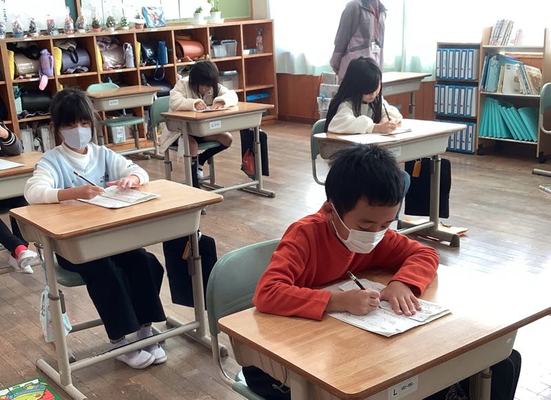 4年生は漢字と平仮名の文字が2文字ずつです。大きさに気をつけてバランスよく書いています。