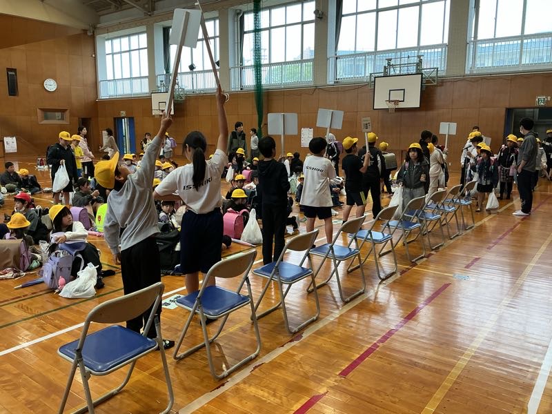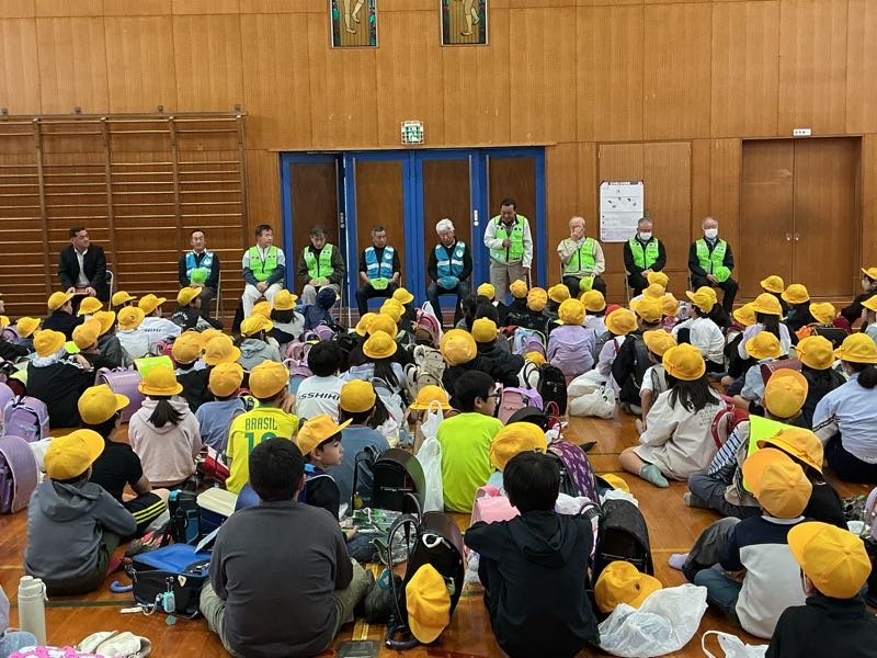 安全に登下校できるようにいつも見守ってくださるスクールガードのみなさんが来てくださいました。各地区のボランティアの方々、お一人お一人の顔を覚えて元気に登校する姿を見ていただきましょう。