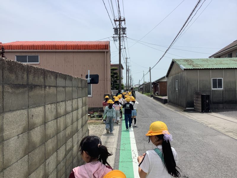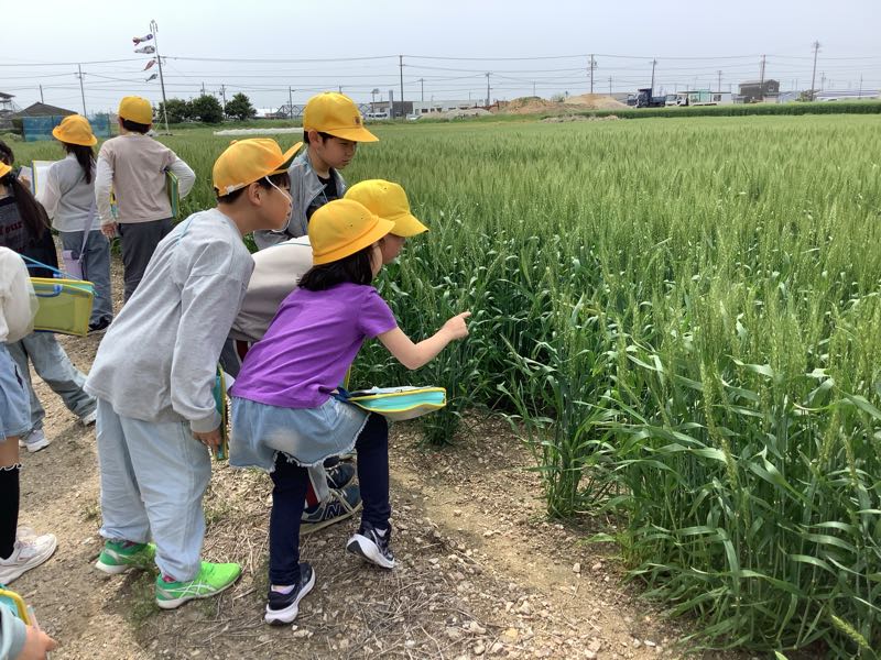 3年生が社会科の学習で学校のまわりを歩きました。方角を覚えながら校区にある農作物やビニールハウスを見てまわりました。これから校区のことを学習していきます。