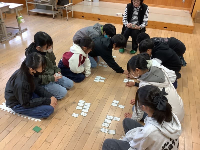 百人一首クラブではどの子も集中して、札を取ろうとしています。