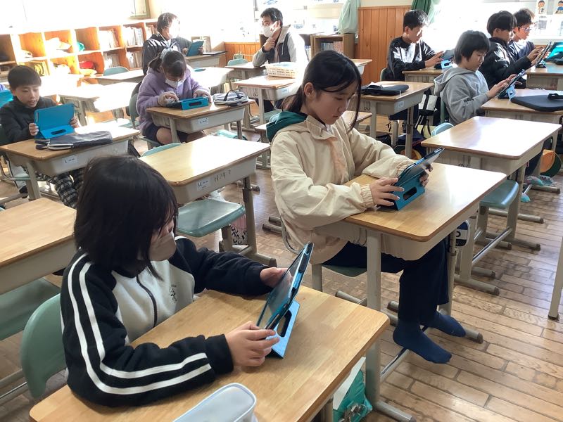 ICTクラブでは、自分たちでプログラムを組んだゲームで遊んでいました。どの子も操作が速いです。