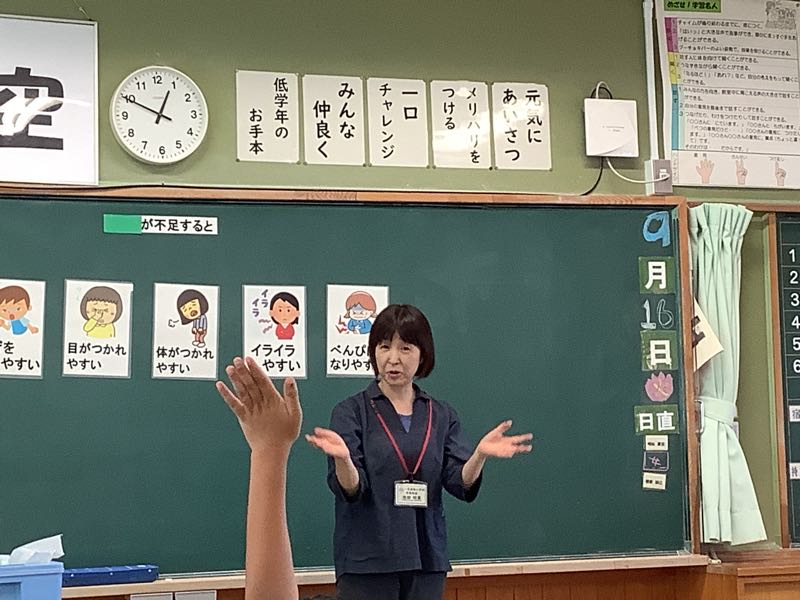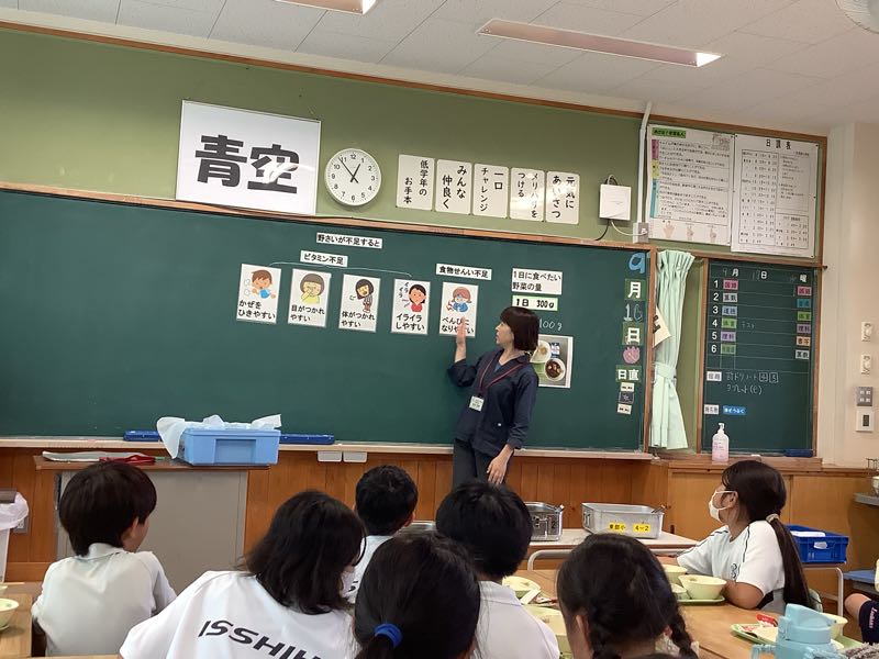 野菜が不足すると、風邪をひきやすかったり、イライラしたりすることをあらためて学びました。1日に必要な野菜の量は300gと聞いてびっくりしました。給食1食分を残さず食べて野菜をたくさん摂取したいですね。