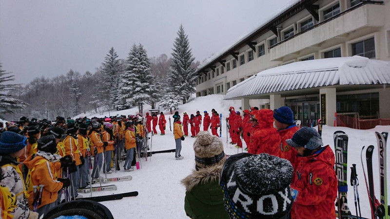 朝食も終わり、スキー実習の準備です。
