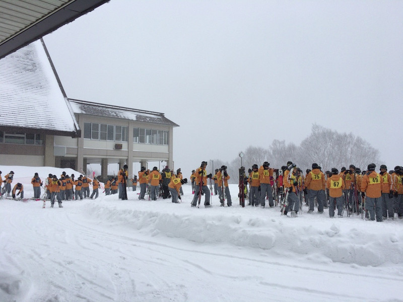 スキーの準備をして、外に集まって来ました。