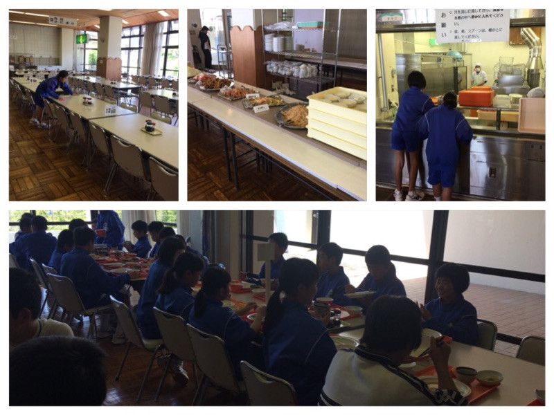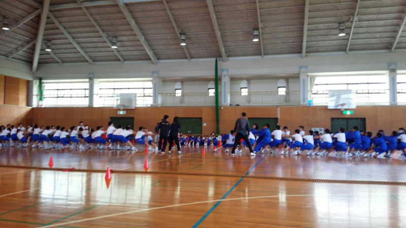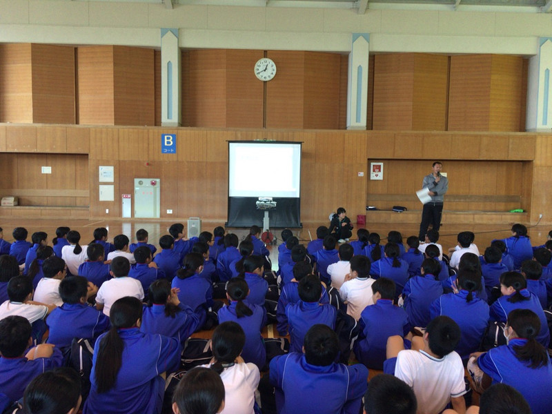 お昼ご飯の後は、神谷先生から吉良中学校の生活についての話を聞いています。